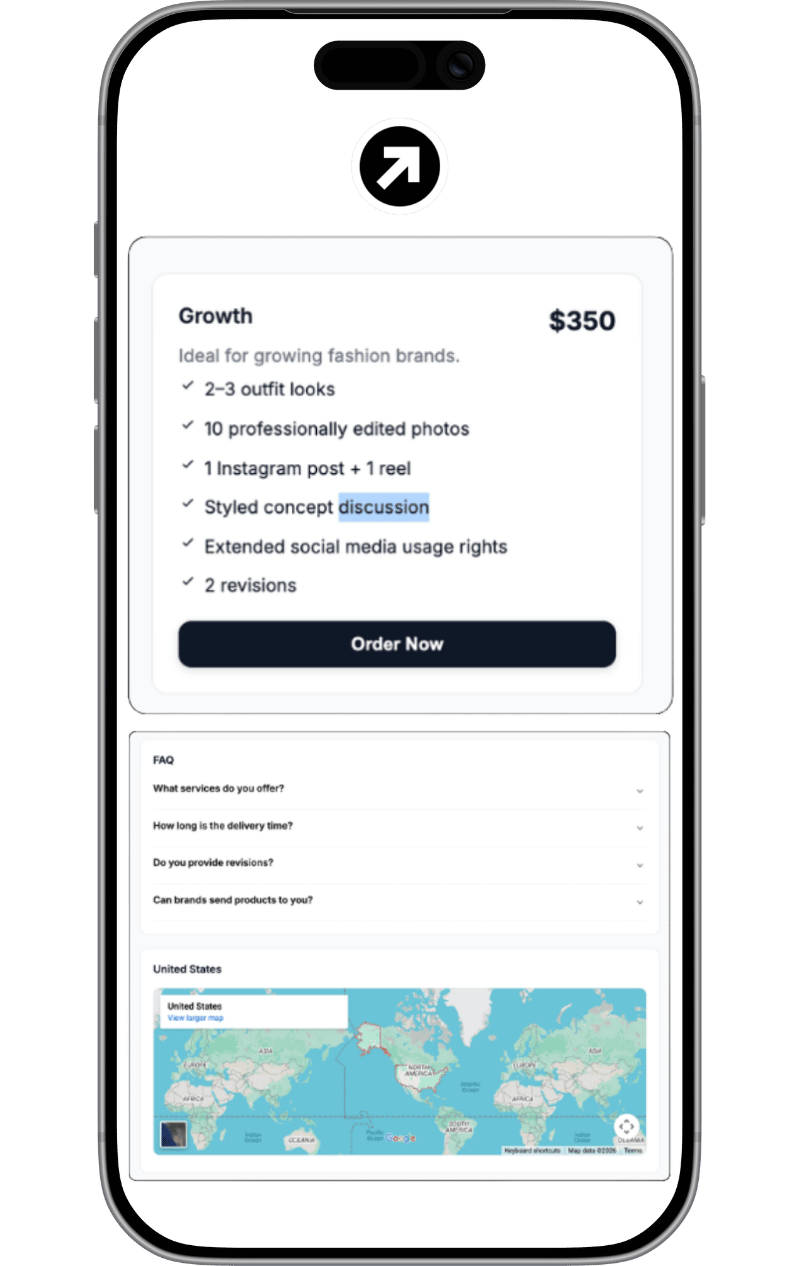Create a professional creator storefront in minutes, no coding required. Showcase services, digital products, pricing, and offers in one clean page.